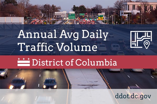 Description: Traffic volume of Roadway Blocks. The dataset contains traffic volume data, created as part of the District of Columbia, Department of Transportation (DDOT) Roads and Highways database. A database provided by the District of Columbia, Department of Transportation identified traffic volume. Count data is collected (both direction) at pre-selected locations on Highway Performance Monitoring System (HPMS) Sections on a three-year cycle. These counts are converted to Annual Average Daily Traffic (AADT).